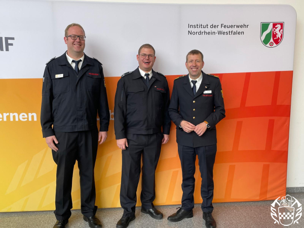 HAMM — Mit der bestandenen Prüfung der Laufbahngruppe 2, erstes Einstiegsamt des feuerwehrtechnischen Dienstes NRW, endete für Markus Seebröker die zwölfmonatige Weiterbildung. Ihm wurde am 31.10.2025 das Prüfungszeugnis am Institut der Feuerwehr NRW in Münster überreicht. Im Anschluss der Zeugnisübergabe gratulierten der Leiter der Feuerwehr Hamm Daniel Hüwe und der Sachgebietsleiter Aus- und Fortbildung Jens Röer zur bestandenen Prüfung und überreichten die Ernennungsurkunde zum Brandoberinspektor. An der Feierstunde nahm ebenfalls die Familie teil.